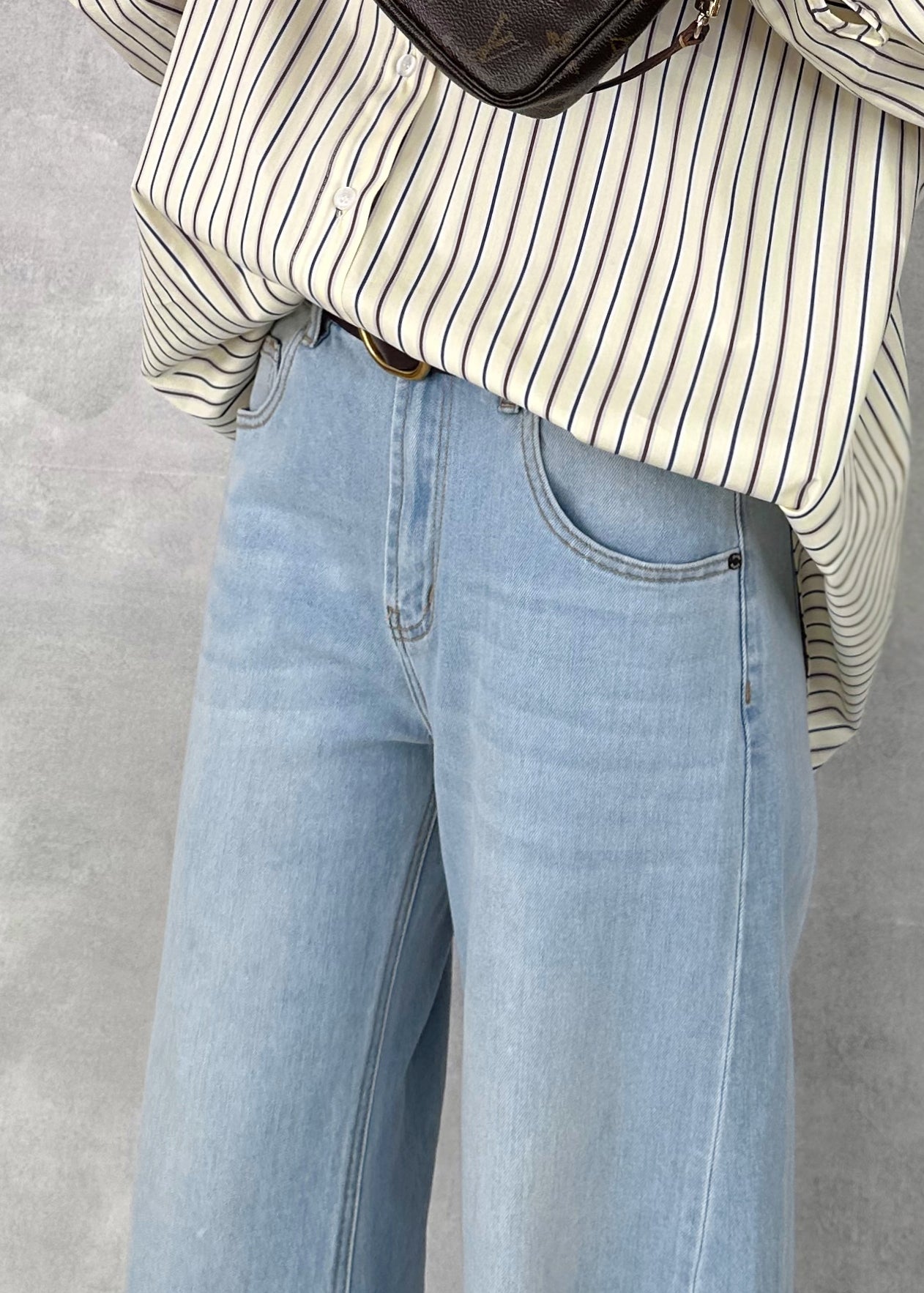 En clásico color denim. Cintura con trabillas y cinco bolsillos. Cierre frontal con cremallera y botón.