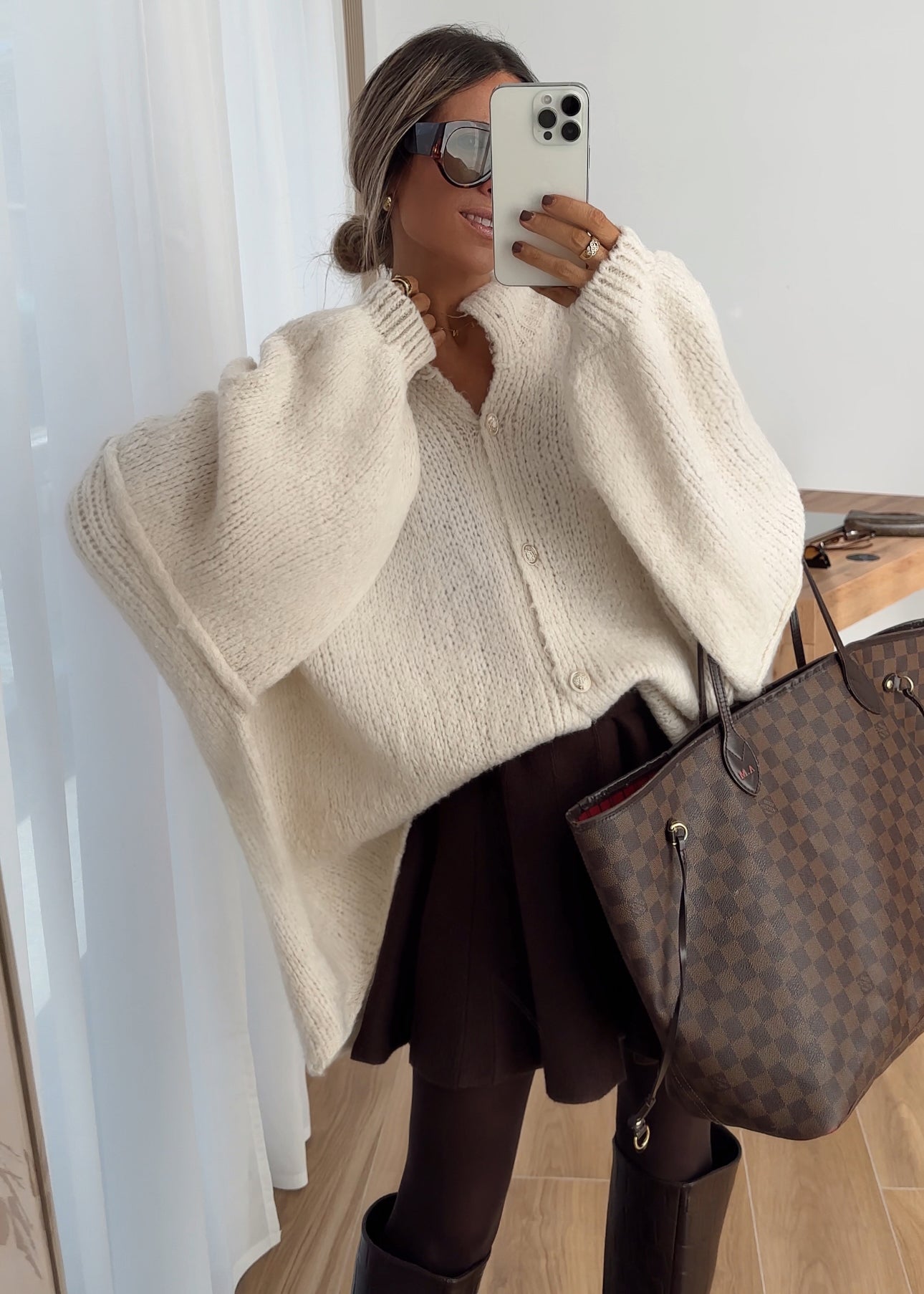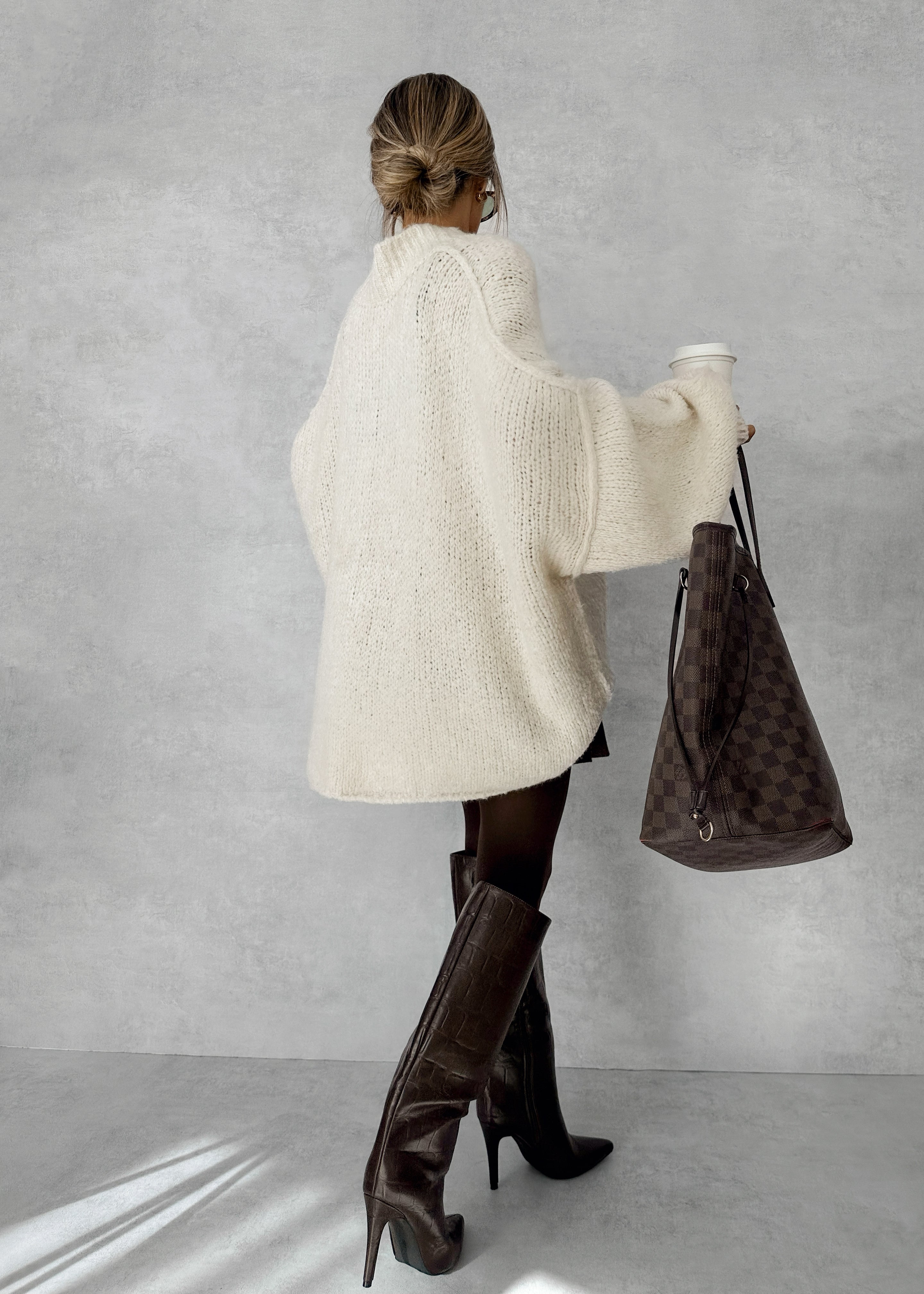 Cárdigan de punto crema.