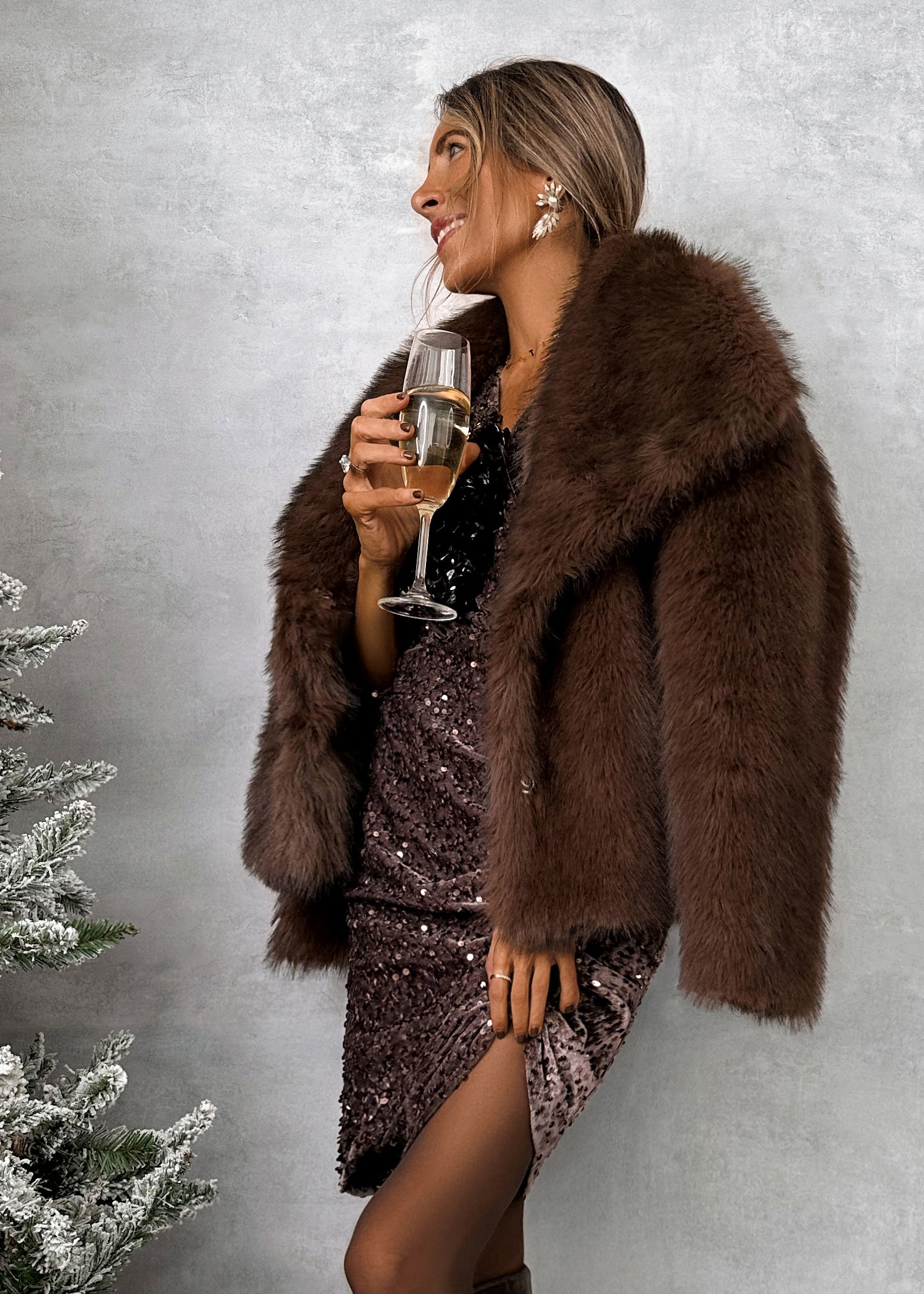 VESTIDO CORTO LENTEJUELAS CHOCOLATE