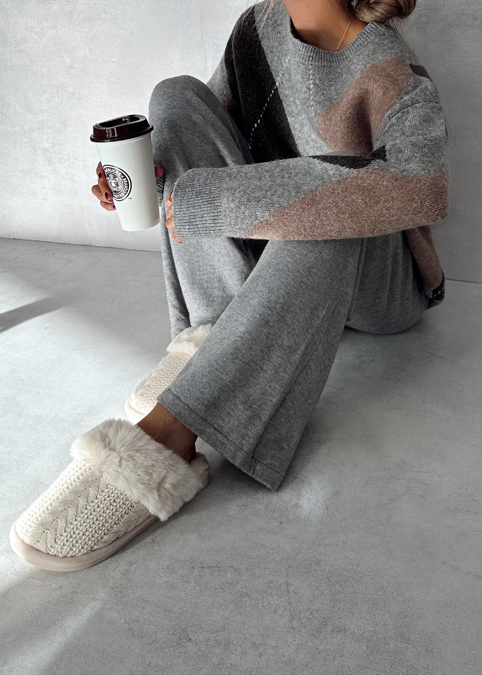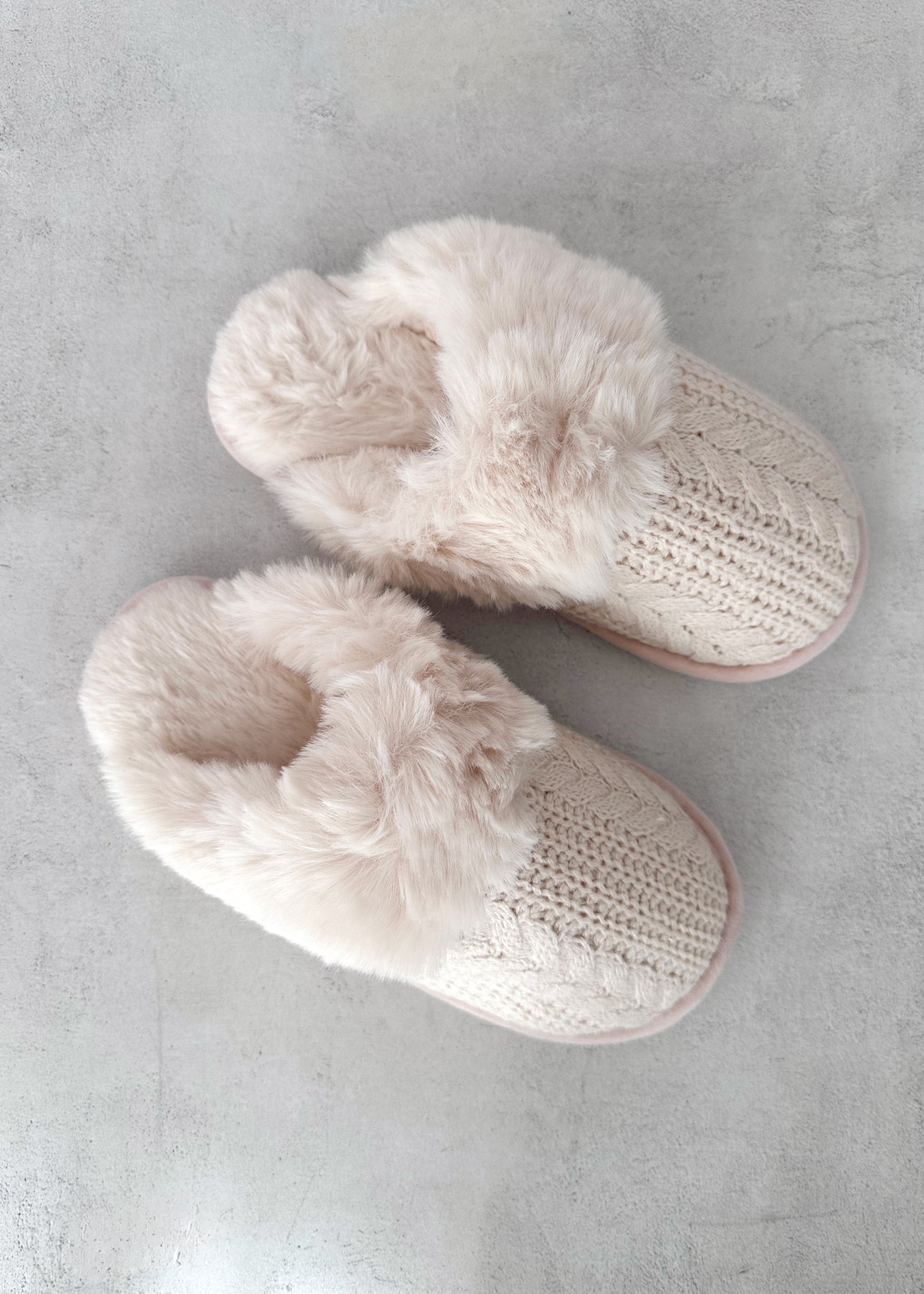 Zapatillas cozy color crudo.