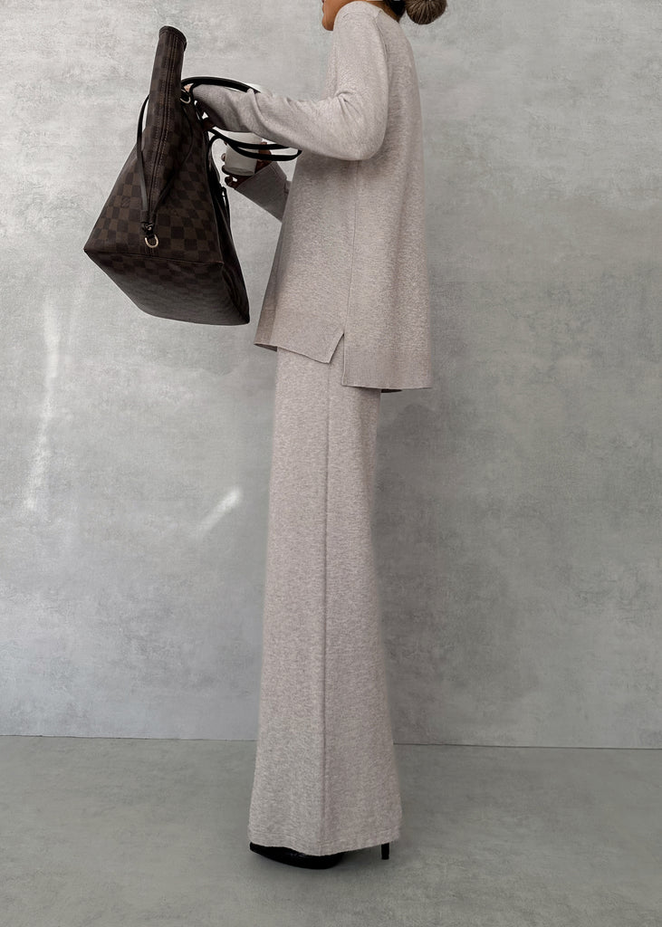 Pantalón tipo palazzo con cintura elástica ajustable.