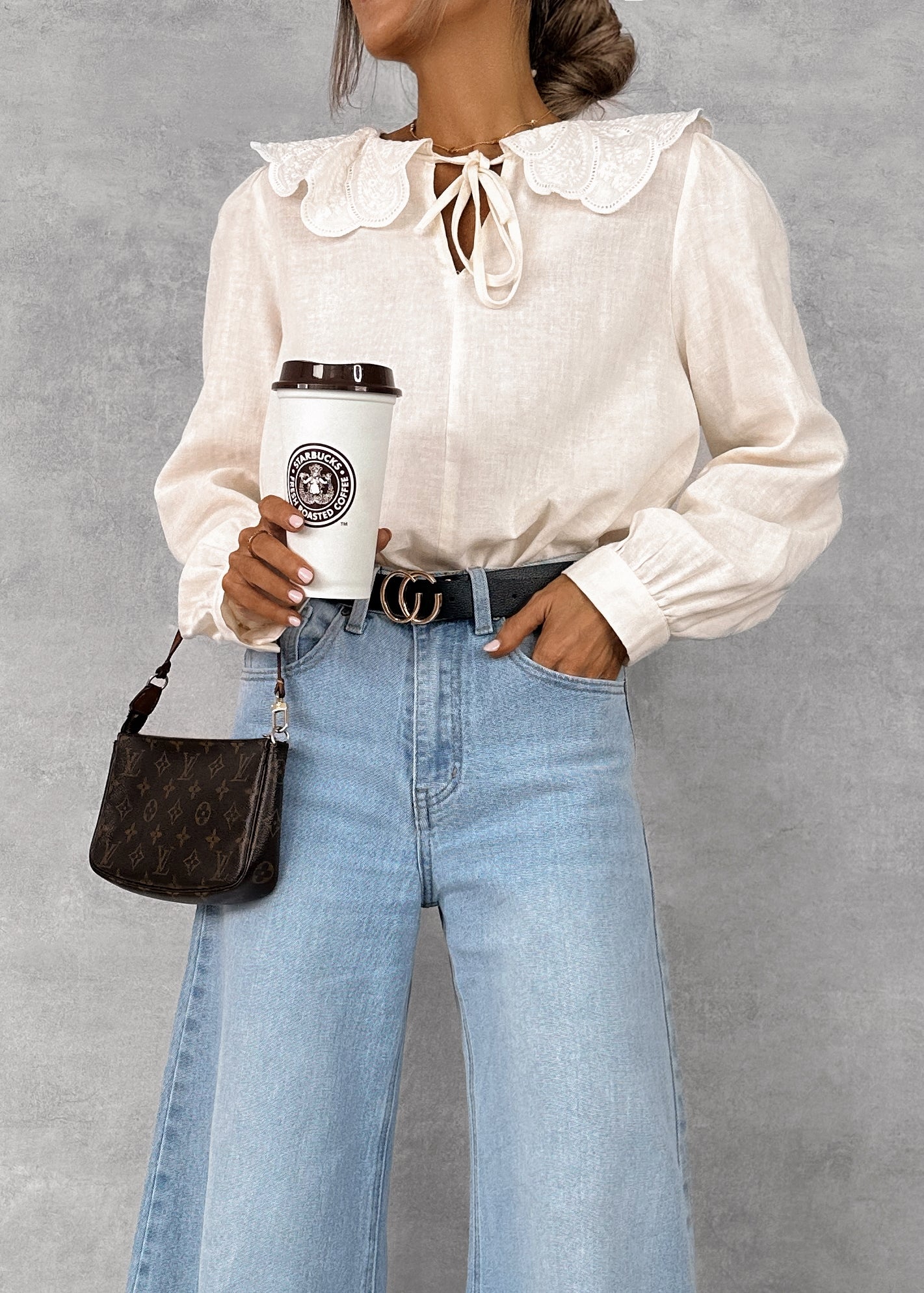 Blusa color crudo con cuello bebé.