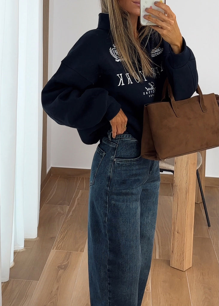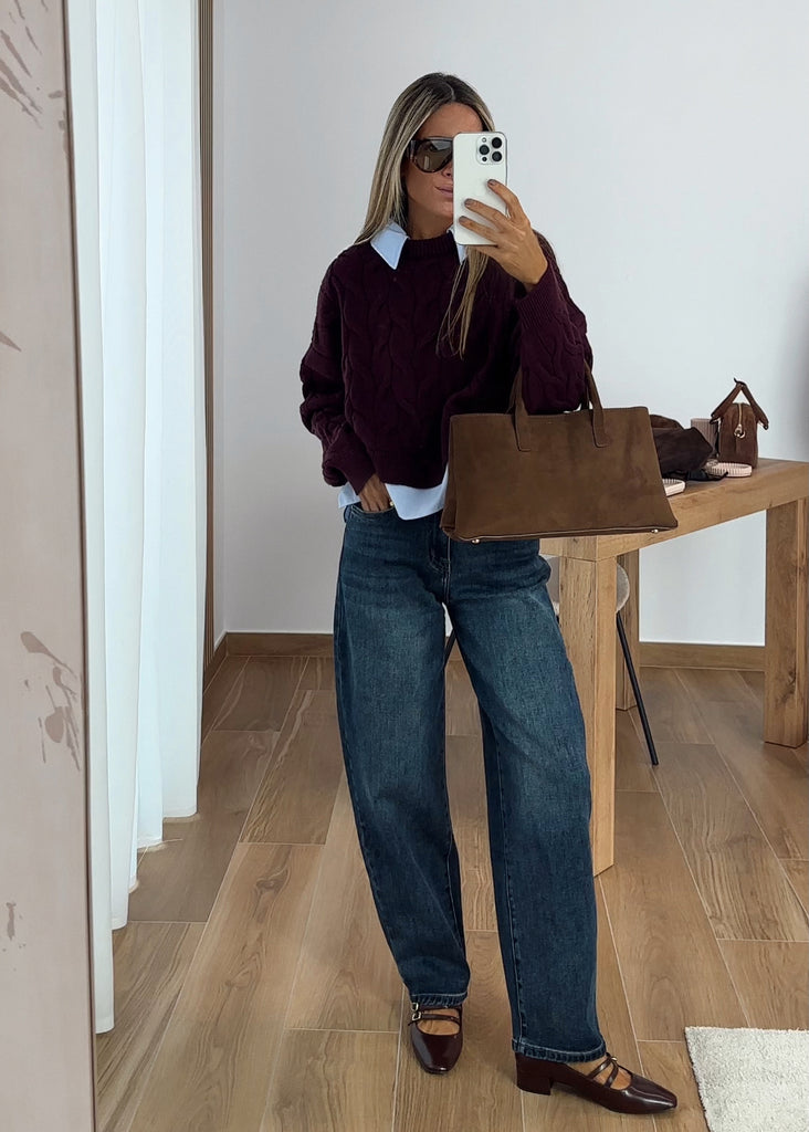 TOTAL LOOK JERSEY COZY RAYAS TENDENCIA + JEANS BARREL TENDENCIA