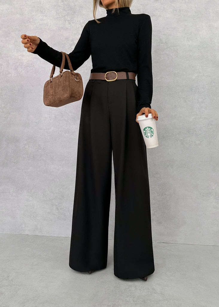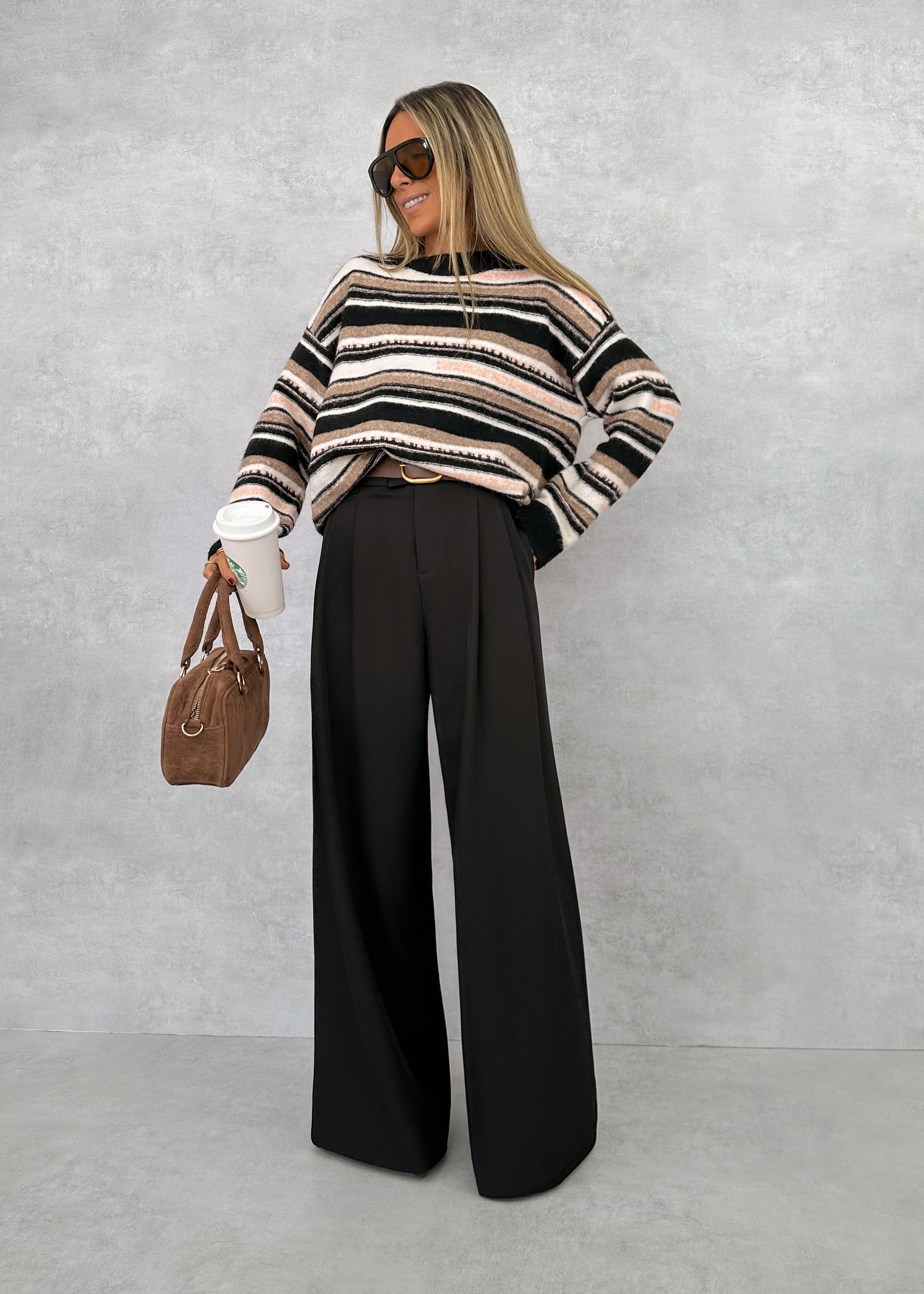 TOTAL LOOK JERSEY RAYAS TENDENCIA EXTRA SOFT + PANTALON PINZAS WIDE LEG NEGRO