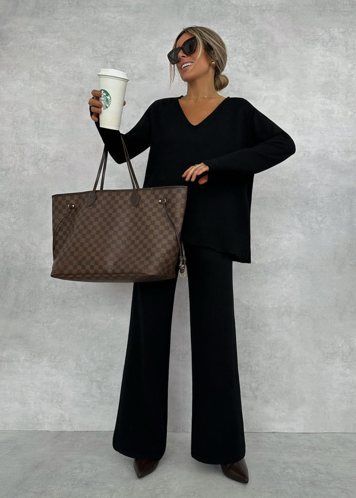 Pantalón tipo palazzo con cintura elástica ajustable.